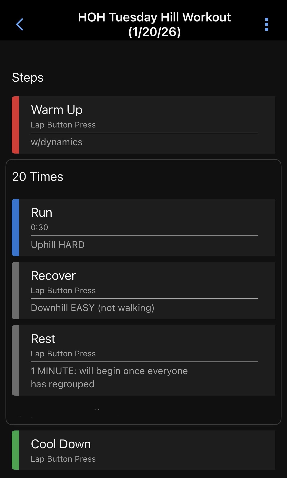 week’s super fun hill workout. Please show up in your lights/reflective gear,
