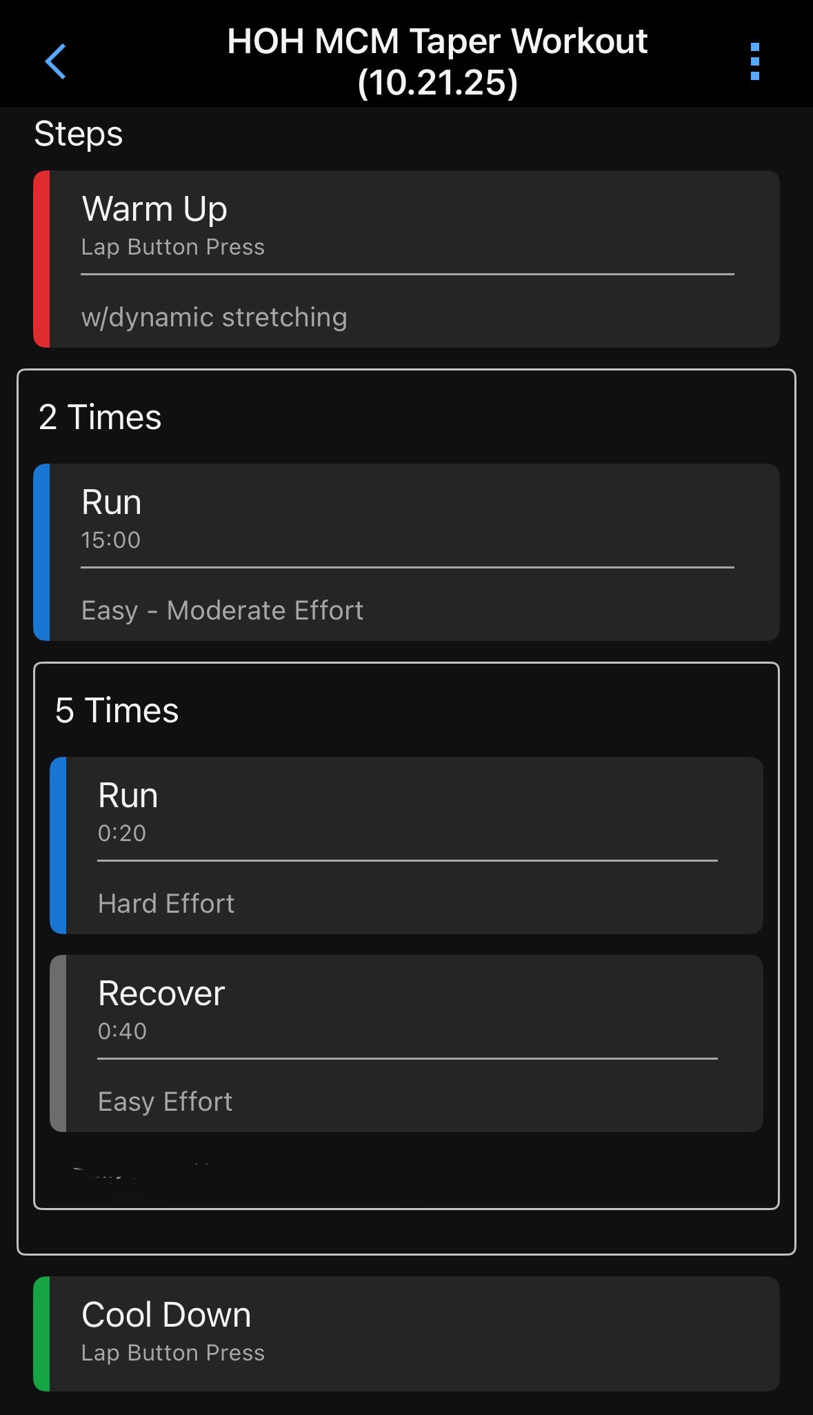 Tuesday (Marathon) Taper Workout (10.21.25):