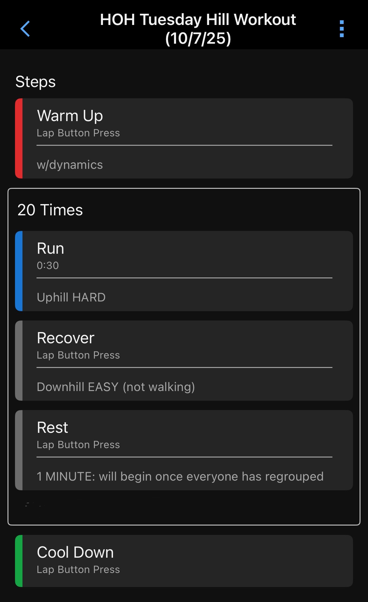 undisclosed number of repeats, we are NOT doing 20. We may switch hills during the workout as well.